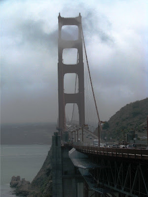 First stop on the Muir Woods tour was supposed to be the Marin Headlands, but our tour guide assured us that it would be far too foggy up there to take in the full glory of the Golden Gate Bridge , so we stopped at the North Vista instead. For as many times as I saw the bridge when I was there, I could never get enough of it, and we took lots of pics at this overlook, even though I insisted that we had to go walk the bridge later in the week (which we did and which you will see…later.)
